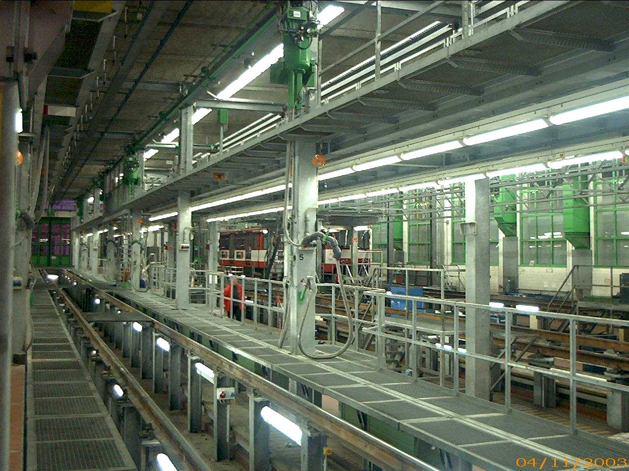 größeren Halle - mit Durchfahrgleisen - werden die täglichen Wartungsarbeiten wie