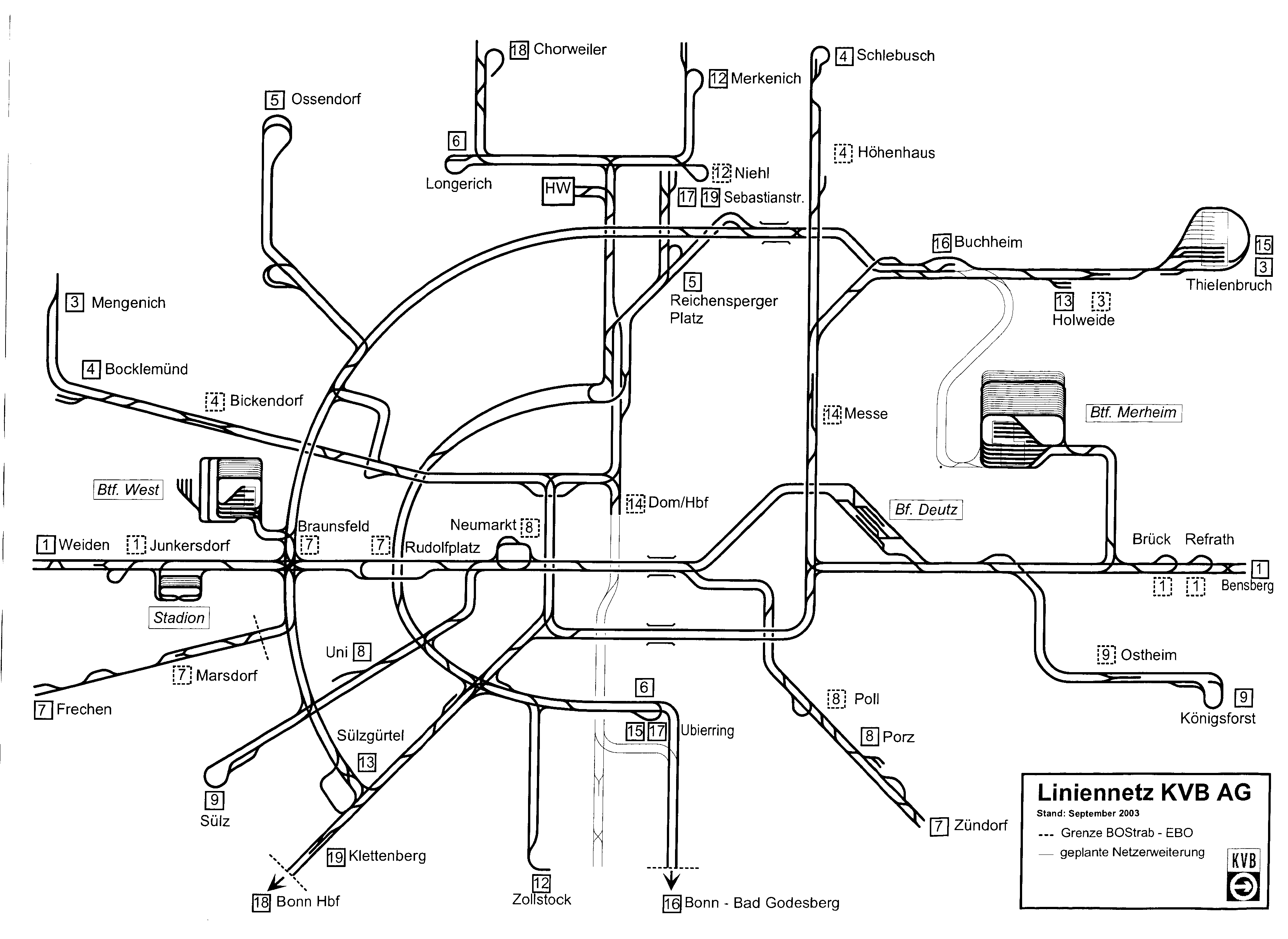 Eine aktuelle Übersicht über die Gleisanlagen in Merheim sowie dem restlichen Kölner Netz findet