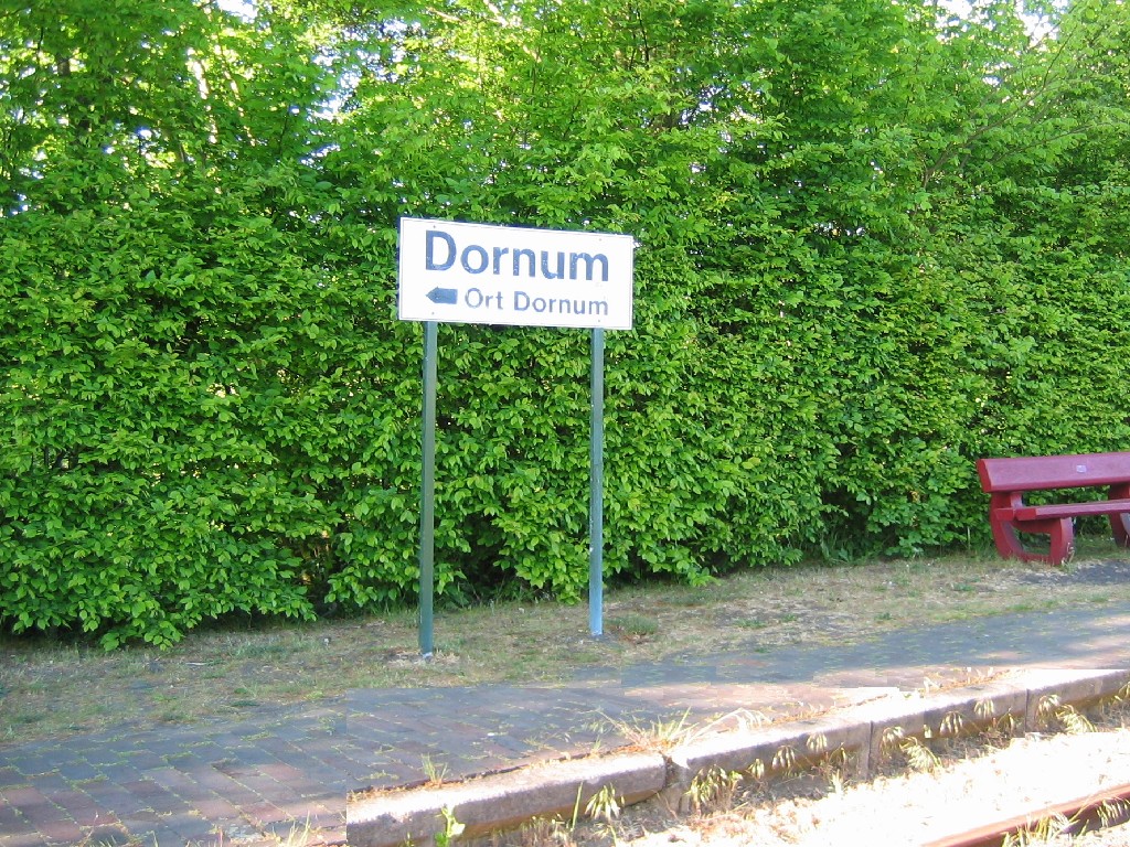 Ab Mitte der 70er wurde die Strecke kontinuerlich zurückgebaut und Leistungen durch bewußt parallel fahrende Busse ersetzt. Der Bahnhof Dornum wurde am 9. Oktober 1979 in eine unbesetzte Haltestelle umgewandelt und das Bahnhofsgebäude kurz darauf abgebrochen. Das heute vorhandene Gebäude dürfte anstelle der Sanitäranlagen des ehemaligen Bahnhofs entstanden sein - rein größenmäßig.