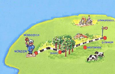 Als "Ostfriesische Küstenbahn" wurde die Strecke von Emden über Georgsheil, Marienhafe nach Norden und von dort weiter über Hage, Dornum, Esens und Wittmund nach Jever und weiter bis Wilhelmshafen bezeichnet. Sie wurde 1883 in Betrieb genommen, die zulässige Streckenhöchstgeschwindigkeit betrug bis zur Stillegung 60 km/h.