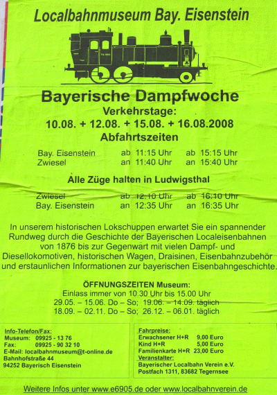 ins 20km entfernte Grenzstädtchen Bayerisch Eisenstein, um dort den Dampfzug und das Eisenbahnmuseum