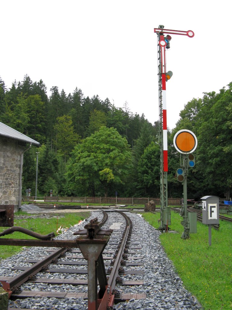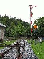 Der Bahnhof steht mitten auf der Grenze und ist symmetrisch dazu gebaut. In der Zeit des kalten Krieges zerschnitt der Eiserne Zaun das schöne Gebäude sowie das gesamte Gelände gnadenlos - heute erinnern eine Dauerausstellung und einige Steine im Boden an diese Zeit. Bis zur Aufnahme der Tschechei war die Grenze dort eine grüne Grenze mit gelangweilten Grenzern.